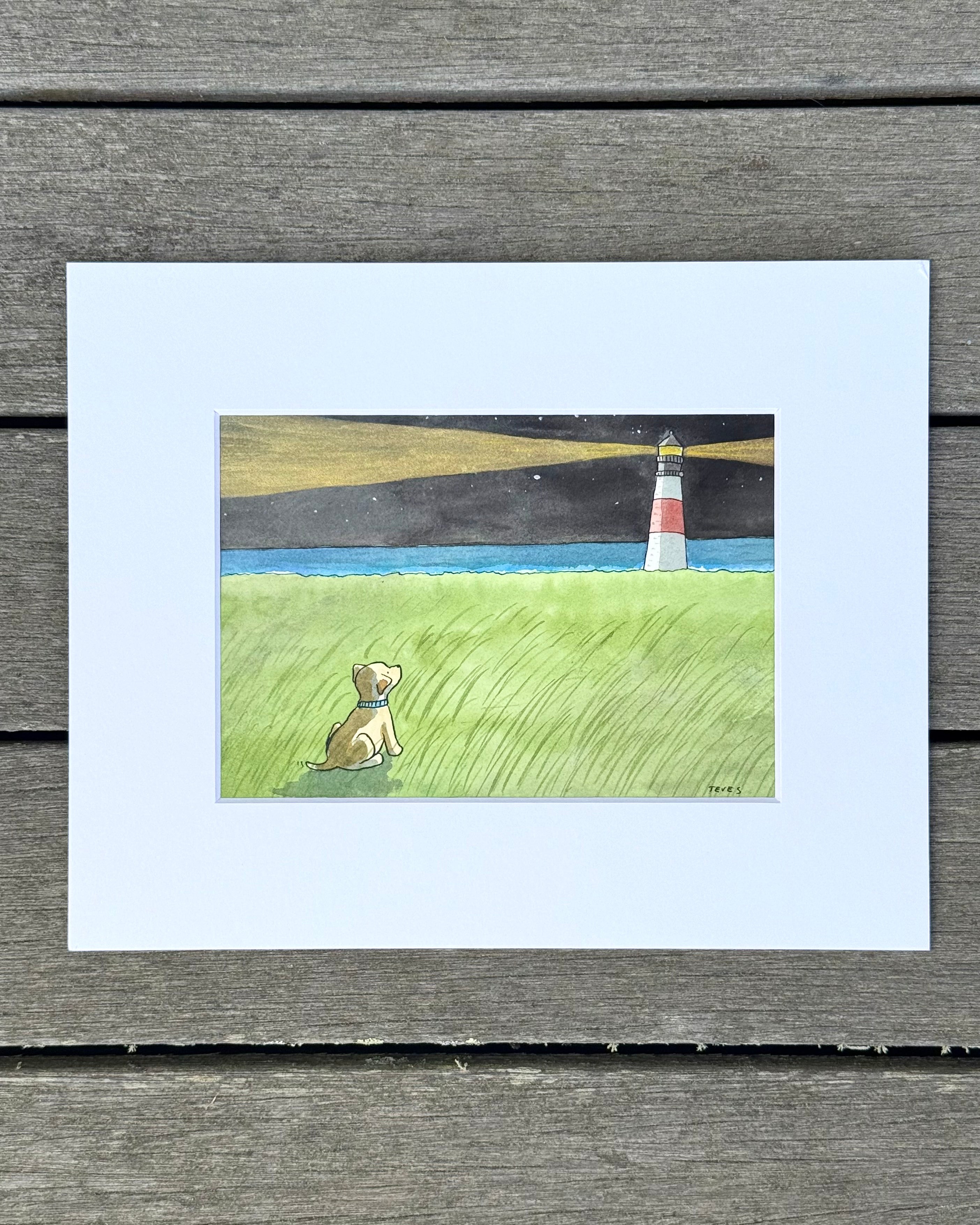 The perfect accent piece to bring a whimsical touch of Nantucket into any space. Each and every original work is hand painted by artist Kate Teves who uses a blend of Japanese ink, watercolor and gold leaf to create these one of a kind pieces of art. A wonderful gift for any dog parent or even a new baby's room!