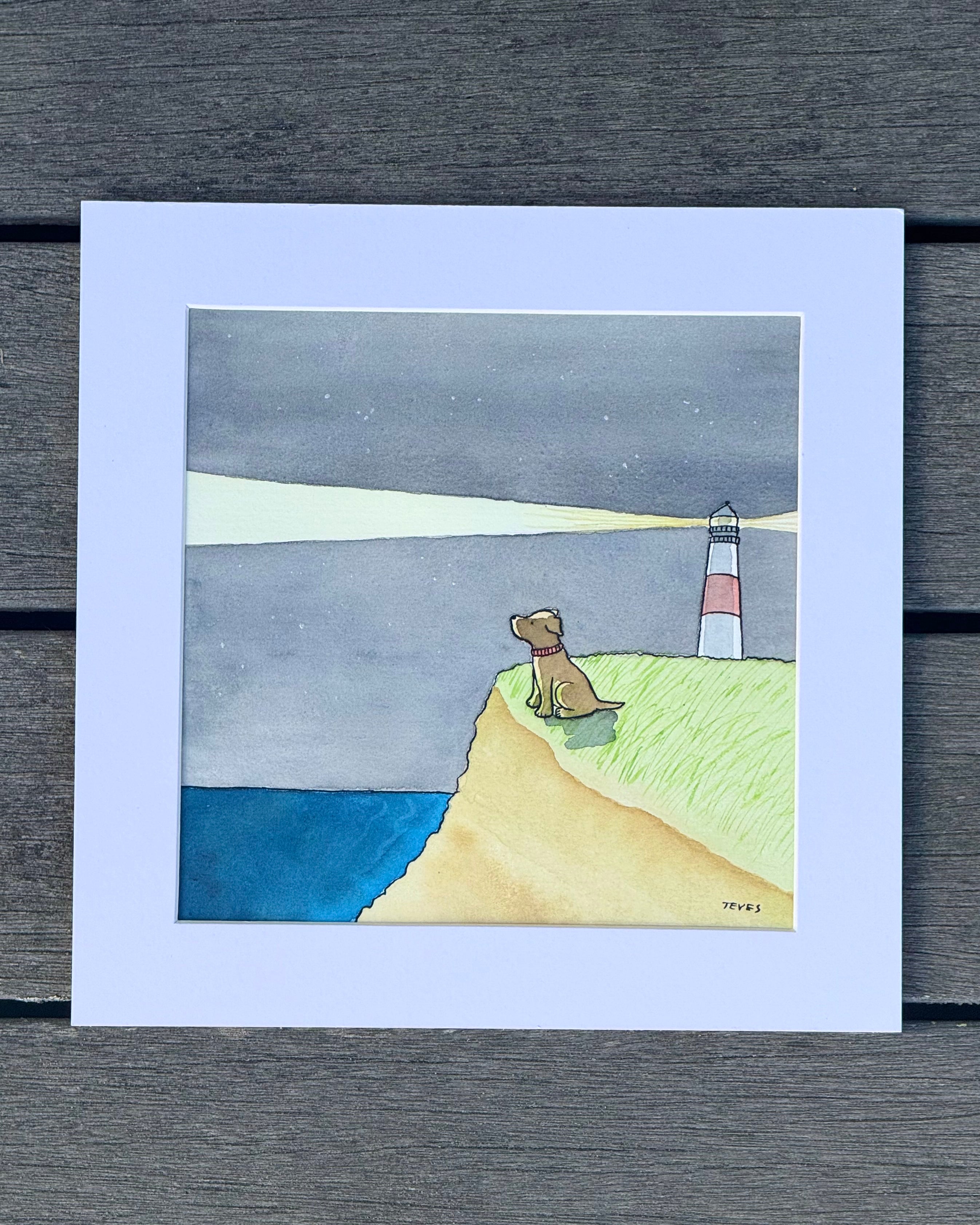The perfect accent piece to bring a whimsical touch of Nantucket into any space. Each and every original work is hand painted by artist Kate Teves who uses a blend of Japanese ink, watercolor and gold leaf to create these one of a kind pieces of art. A wonderful gift for any dog parent or even a new baby's room!